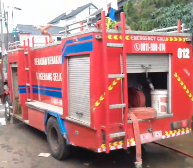Usai surut, Pemkot Tangsel menerjunkan Dinas Pemadam Kebakaran dan Penyelamatan (Damkar) untuk melakukan penyemprotan lumpur di wilayah Villa Pamulang.