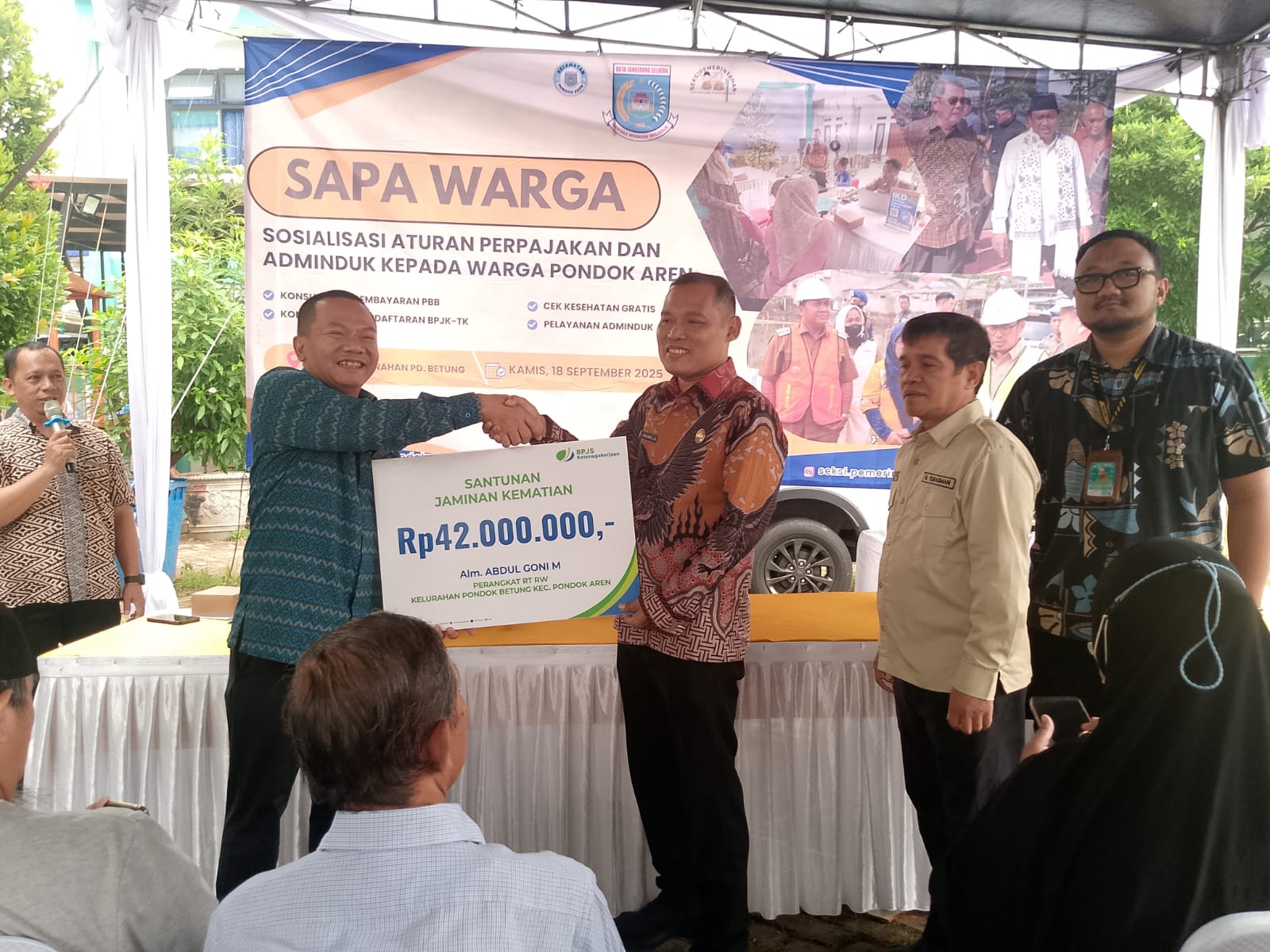 Momen haru dan penuh penghormatan terjadi dalam acara ini, saat pihak BPJS Ketenagakerjaan menyerahkan santunan kematian kepada keluarga almarhum salah satu Ketua RW di wilayah Pondok Betung yang telah meninggal dunia.