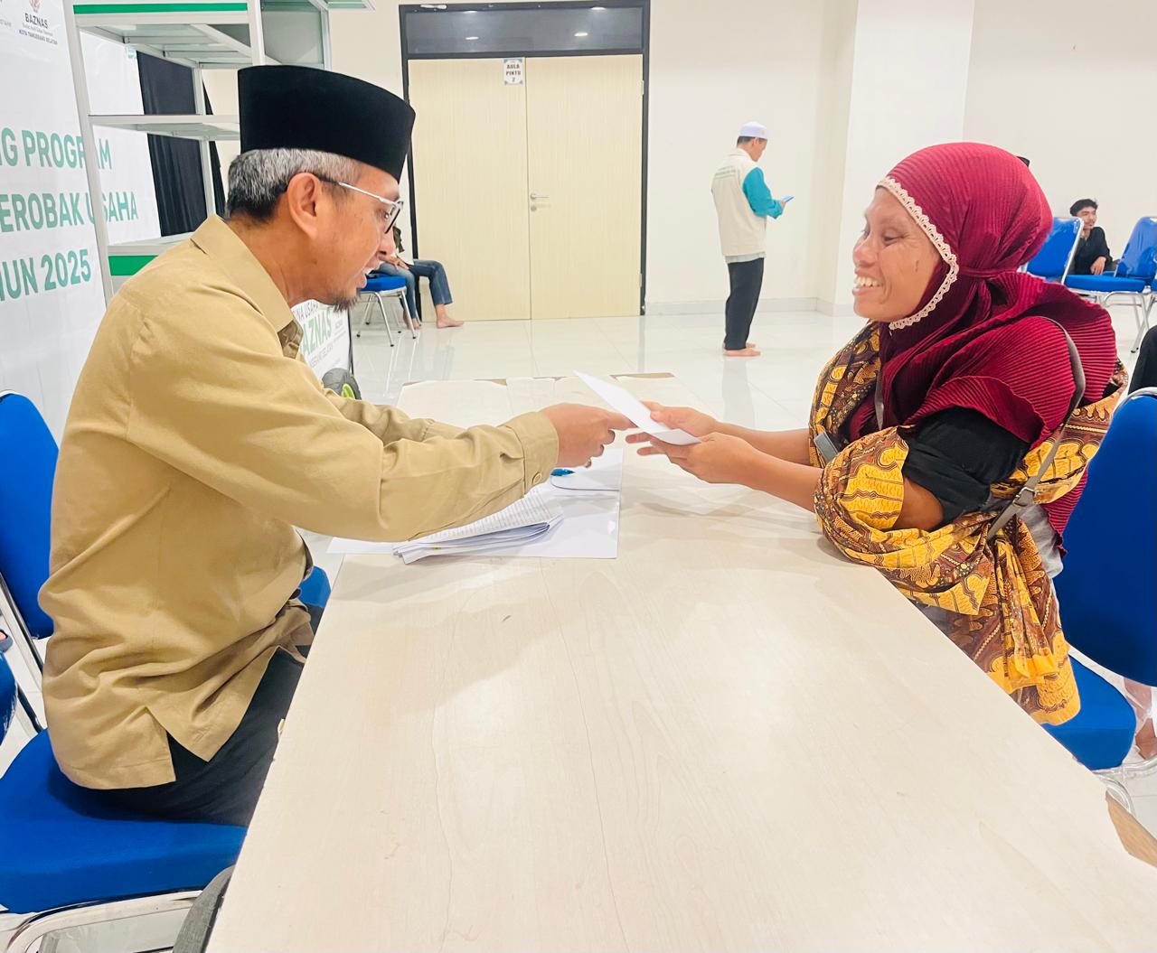 Sebanyak 40 penerima manfaat, yang menerima bantuan gerobak secara simbolis dari Wakil Ketua III BAZNAS Tangsel Tarzuni M.M di Kantor Baznas Tangsel Jl. Hanjuang Raya, Rawa Buntu, Kecamatan Serpong Kota Tangerang Selatan, Senin (20/10/2025).