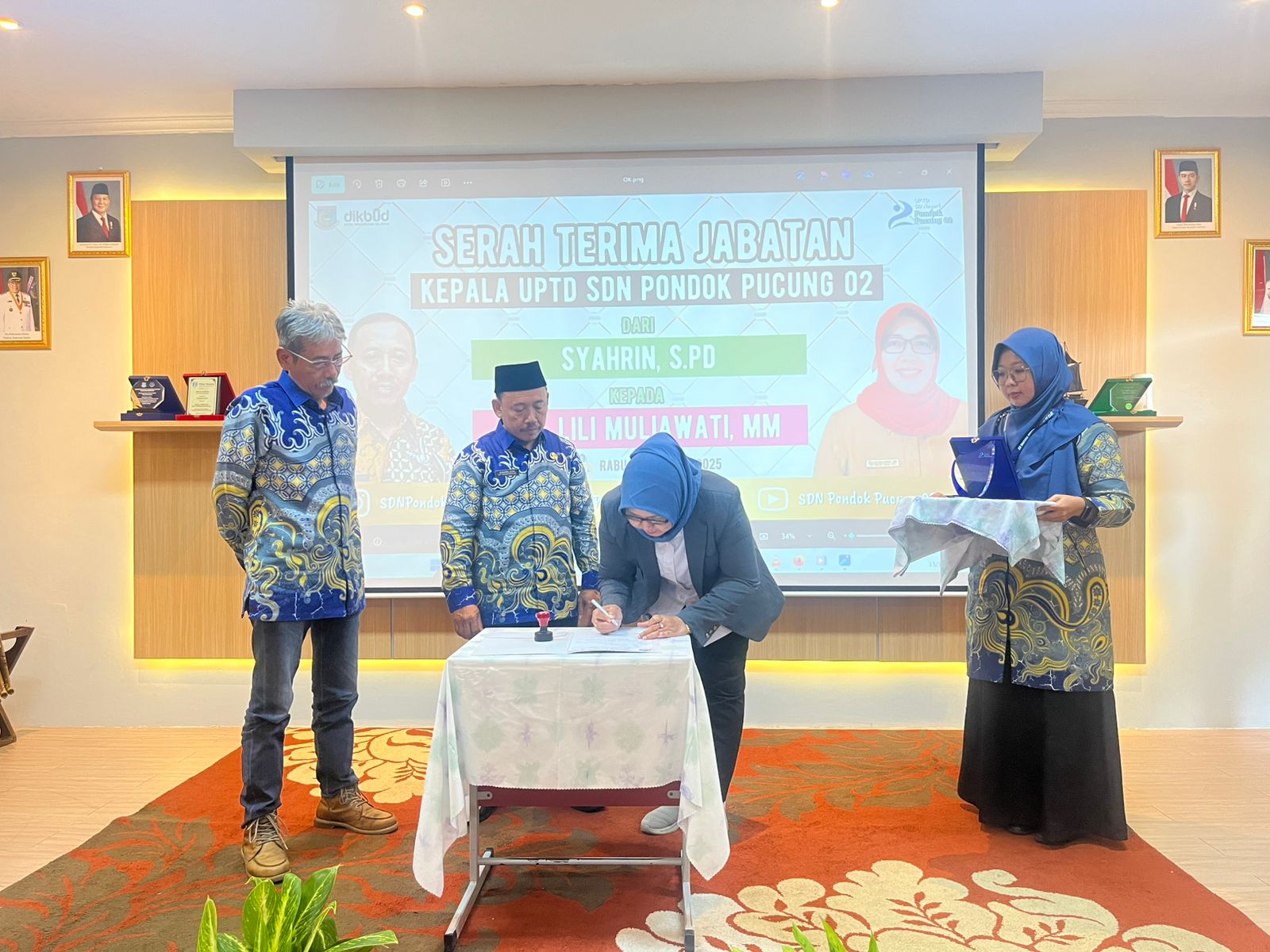 Pondok Aren – Memasuki masa purna bakti UPTD Sekolah Dasar Negeri (SDN) Pondok Pucung 02, Kecamatan Pondok Aren Kota Tangerang Selatan menggelar acara serah terima jabatan (Sertijab) dari Kepala UPTD sebelumnya Syahrin S.Pd kepada Dra.Lili Muliawati M.M bertempat di Aula UPTD SDN Pondok Pucung 02, Rabu (15/10/2025).