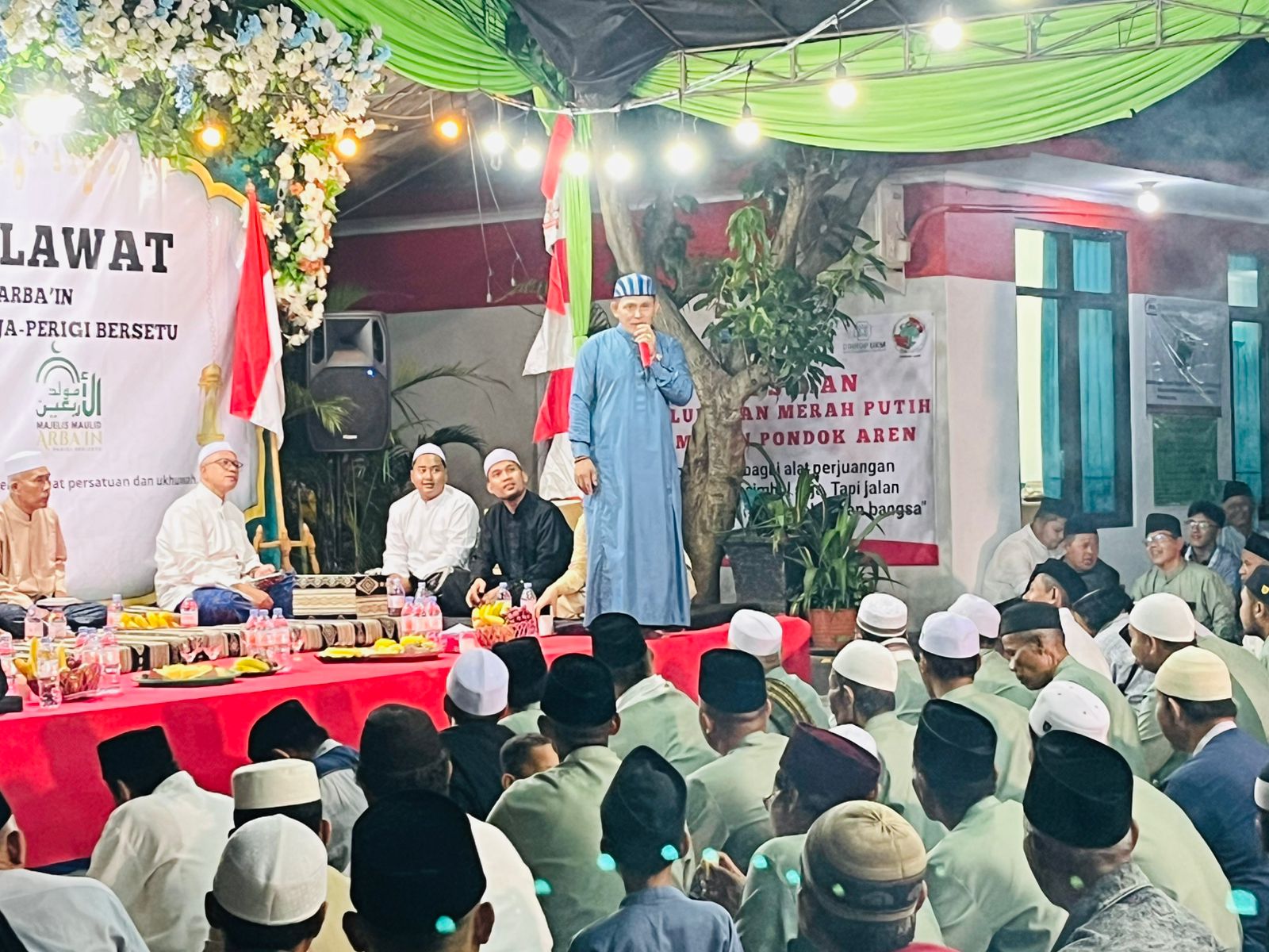 “Ini tahun ke-2 kita mengadakan maulid gabungan dan bertujuan untuk mempererat tali silaturami kita kumpulkan para ustad dan para jamaah menjadi satu di halaman kelurahan Parigi. Harapan kedepannya bahwa kegiatan Maulid Arba’in ini bisa bertambah yang tadinya empat, bisa lebih. “Pungkasnya.
