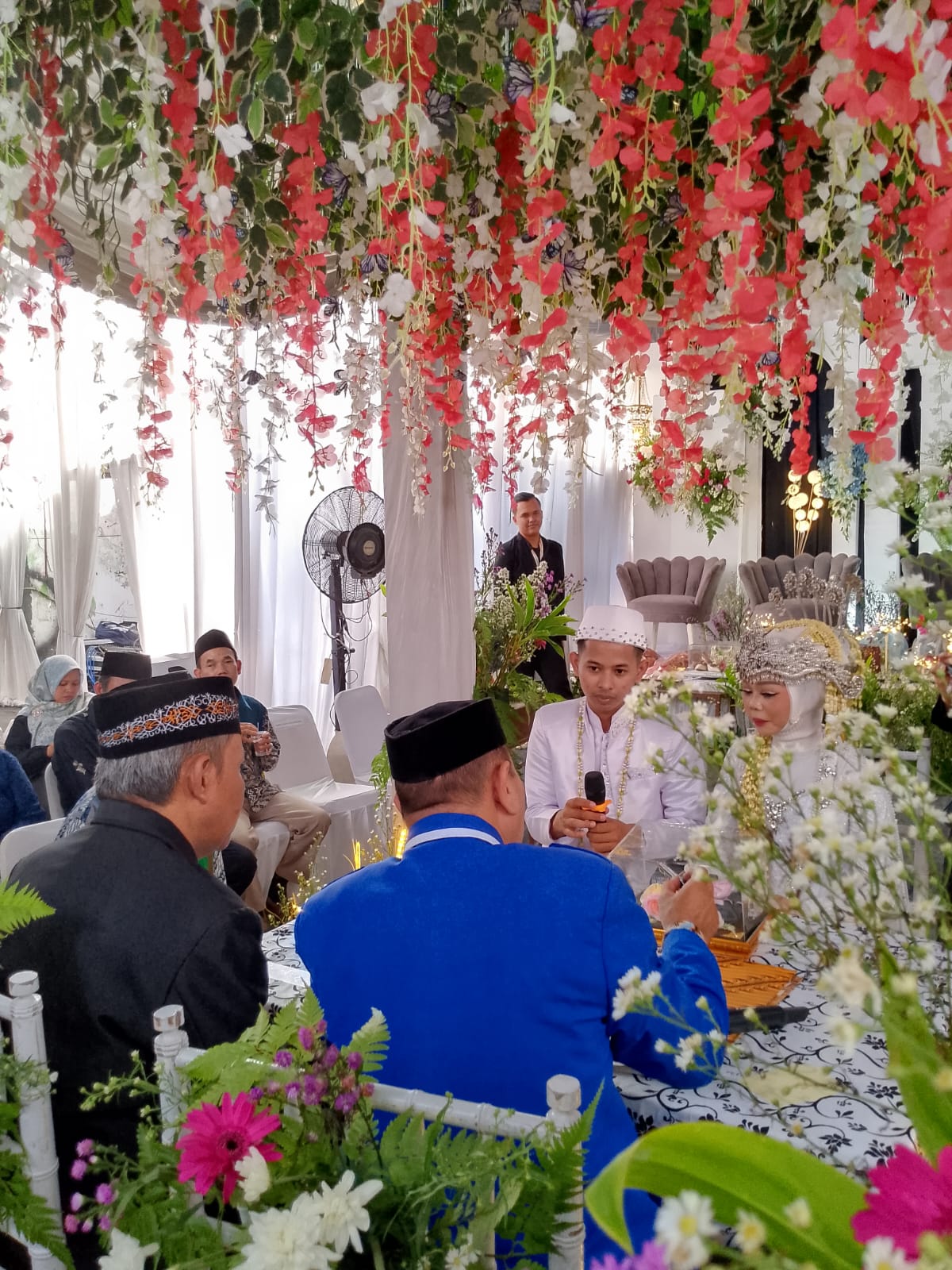 Acara sakral tersebut digelar dengan suasana hangat dan penuh kekhidmatan, disaksikan keluarga besar, sanak saudara, serta para sahabat dekat kedua mempelai.