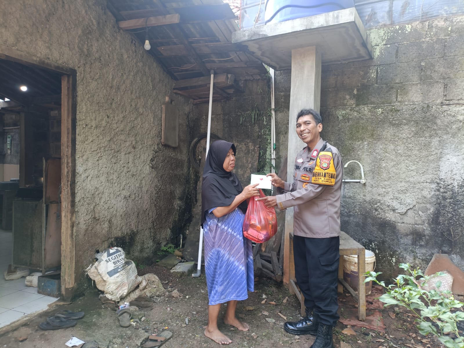 Sembako diserahkan langsung kepada Sdri Enjuy, seorang janda yang ditinggal mati suaminya dan kurang mampu. Bripka Yayan berharap pemberian sembako ini dapat membantu meringankan beban Sdri Enjuy dan keluarganya.
