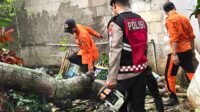 Sat Samapta Polres Tangsel Sigap Evakuasi Pohon Tumbang Akibat Hujan Deras dan Angin Kencang di Serpong
