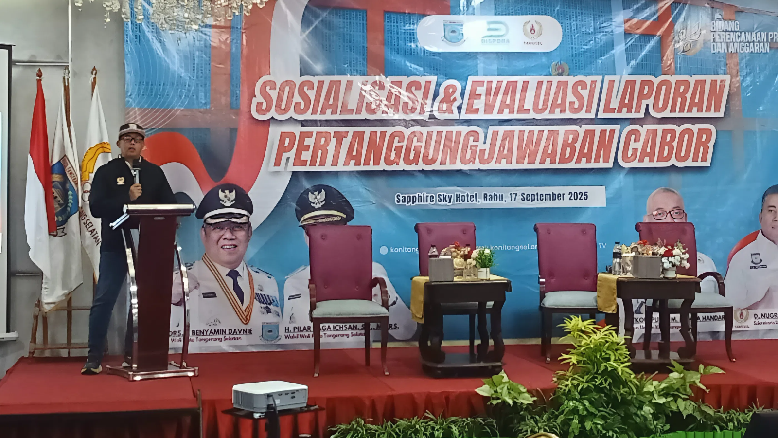 Pagedangan – Komite Olahraga Nasional Indonesia (KONI) Kota Tangerang Selatan menggelar Sosialisasi dan Evaluasi Laporan Pertanggungjawaban (LPJ) Cabang Olahraga (Cabor) di Hotel Sapphire Sky, Pagedangan Tangerang, Rabu (17/9/2025).