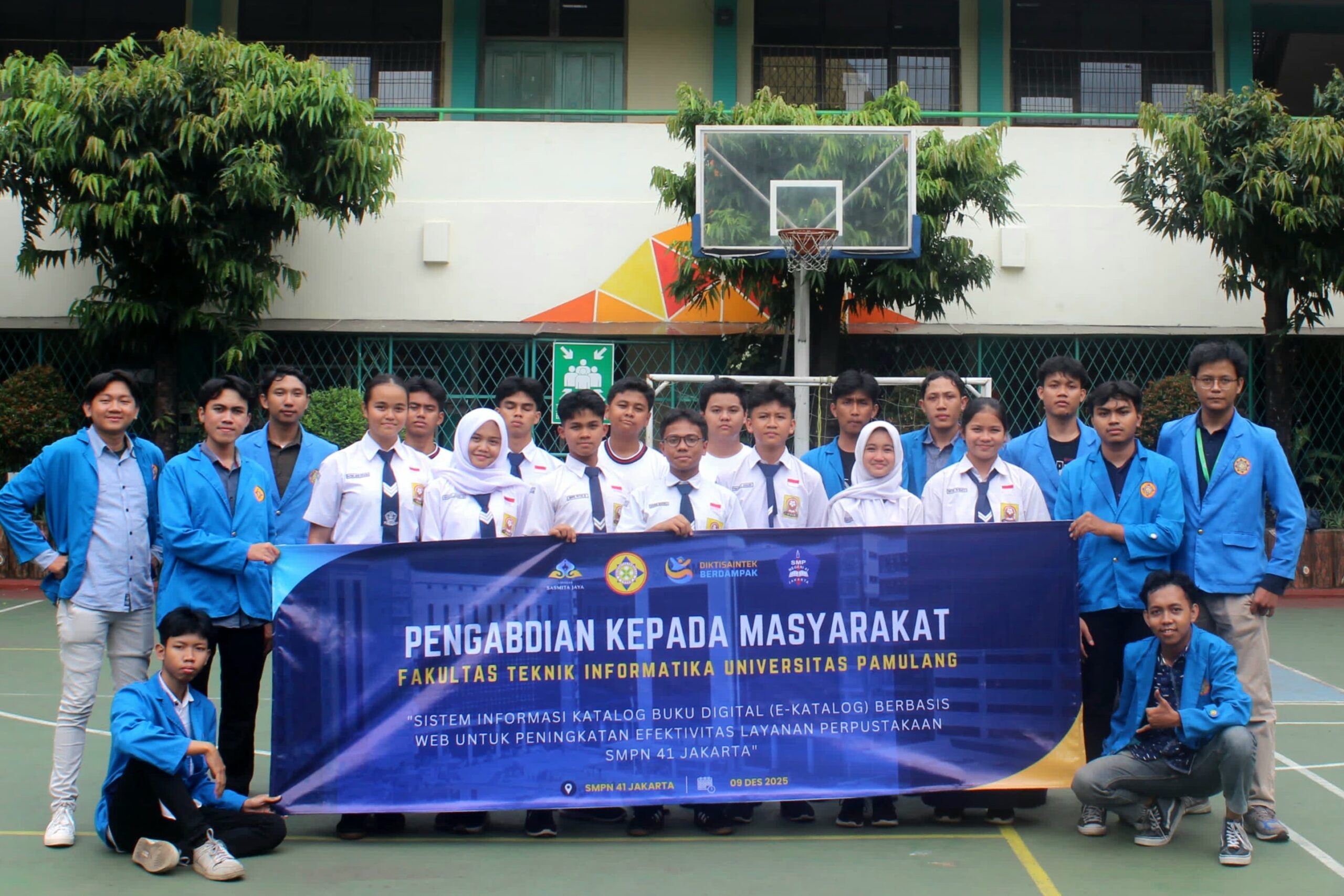 Jakarta – Program Studi Teknik Informatika Universitas Pamulang (Unpam) melaksanakan kegiatan Pengabdian kepada Masyarakat (PKM) di SMP Negeri 41 Jakarta pada Selasa, 9 Desember 2025. Kegiatan ini bertujuan meningkatkan efektivitas perpustakaan sebagai pusat ilmu pengetahuan sekaligus meningkatkan kualitas layanan bagi guru dan siswa.