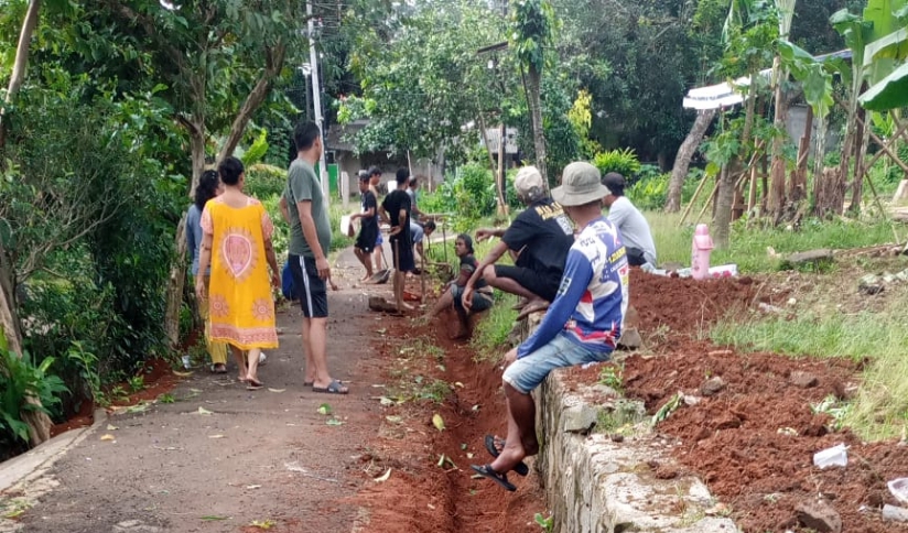 Warga RT 05 RW 01 Kp Cikuda Cisauk Bangun Pembuangan Air untuk Atasi Banjir