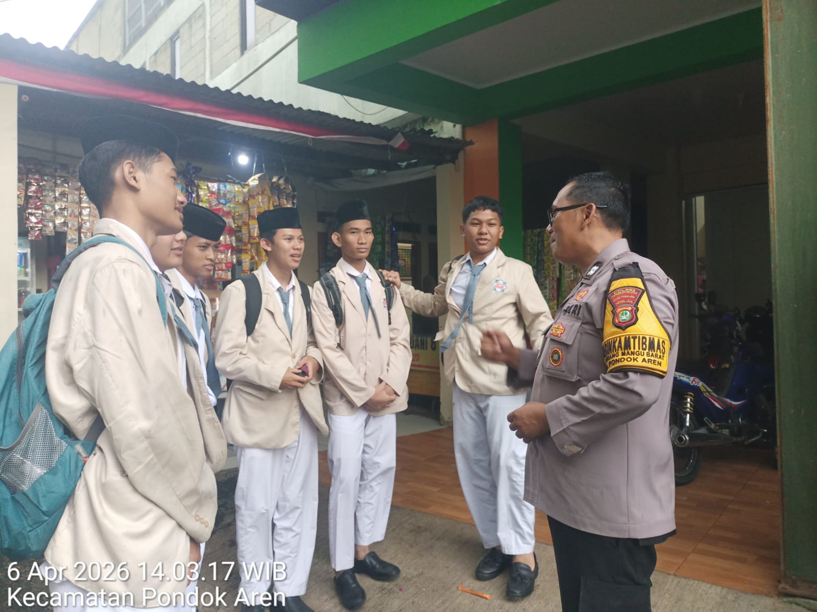 Beritatangsel.com, Tangerang Selatan – Dalam upaya menjaga situasi kamtibmas tetap aman dan kondusif, Polsek Pondok Aren melalui Bhabinkamtibmas Kelurahan Jurang Mangu Barat Aiptu Subhanudin melaksanakan kegiatan patroli sekolah sekaligus himbauan kepada para pelajar menjelang waktu pulang sekolah.
