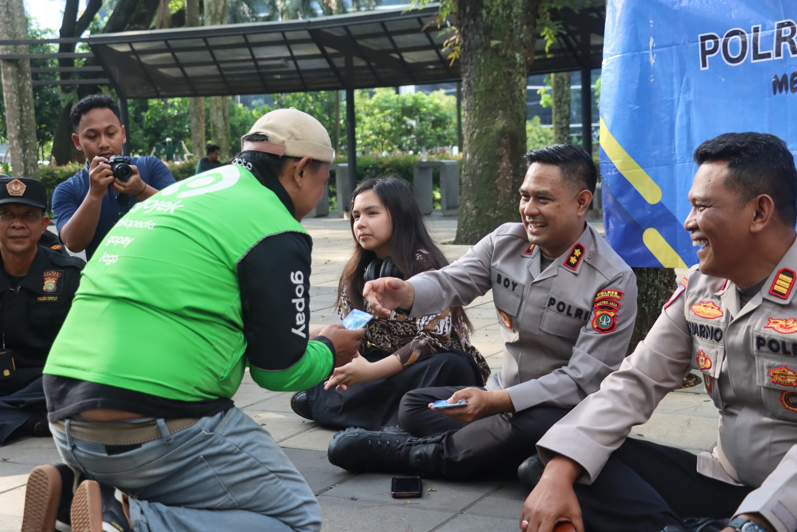 Kapolres Tangerang Selatan AKBP Boy Jumalolo, S.H., S.I.K., M.H. hadir langsung dalam kegiatan tersebut, didampingi Kasat Binmas AKP Warno serta personel Binmas lainnya. Dalam suasana santai dan terbuka, Kapolres mendengarkan berbagai keluhan dan masukan dari para peserta, khususnya komunitas ojek online yang sehari-hari beraktivitas di lapangan.